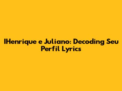 Hey guys! Today, we're diving deep into the heartfelt world of Henrique e Juliano, specifically dissecting the lyrics of their hit song, "Seu Perfil." This sertanejo duo is known for crafting tunes that tug at your heartstrings, and "Seu Perfil" is no exception. So, grab your headphones, maybe a box of tissues, and let’s explore the emotional landscape painted by this beautiful song.