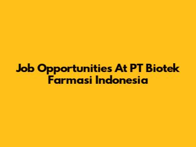 Job Opportunities At PT Biotek Farmasi Indonesia