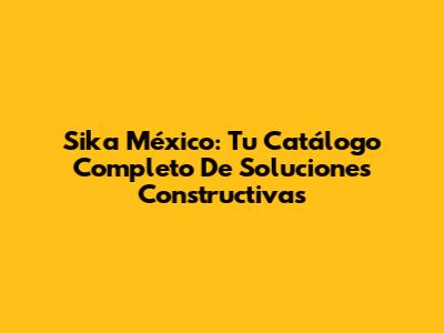 Sika México: Tu Catálogo Completo De Soluciones Constructivas