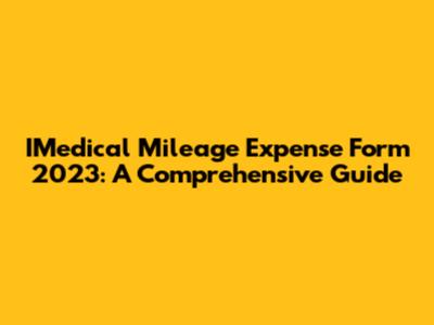 IMedical Mileage Expense Form 2023: A Comprehensive Guide