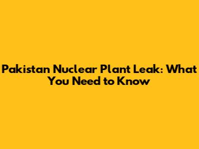Pakistan Nuclear Plant Leak: What You Need To Know