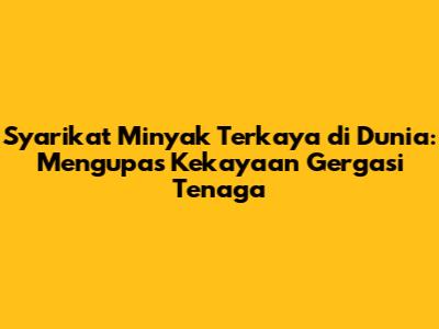 Guys, pernah tak korang terfikir, syarikat mana yang paling kaya raya dalam dunia ni, terutamanya yang berkaitan dengan minyak? Haa, hari ini kita nak selongkar sikit tentang syarikat minyak terkaya di dunia. Bukan setakat cerita kosong, tapi kita akan kupas tuntas, siapa diaorang, macam mana diorang boleh jadi kaya macam tu, dan apa je impak diorang dalam industri tenaga global. Korang kena tahu, industri minyak ni bukan main-main, ia adalah nadi kepada ekonomi dunia. Dari petrol yang korang isikan minyak kereta tu, sampailah kepada pelbagai produk petrokimia yang kita guna setiap hari, semuanya datang dari syarikat-syarikat gergasi ni. Jadi, nak tak nak, kita kena faham siapa pemain utama dalam arena ni. Artikel ni bukan saja untuk korang yang minat pasal minyak, tapi untuk semua yang nak tahu macam mana kuasa ekonomi dunia ni berputar. Kita akan lihat syarikat-syarikat yang bukan saja menguasai pengeluaran minyak, tapi juga mempunyai aset dan keuntungan yang lumayan setiap tahun. Duit yang diorang buat ni, bukan sikit-sikit, tapi berbilion-bilion ringgit! Jadi, bersedialah untuk ternganga sikit bila korang baca pendedahan ni. Kita akan mula dengan mengenali beberapa nama besar yang sering disebut-sebut dalam senarai teratas syarikat minyak terkaya di dunia. Ini bukan sekadar tentang siapa yang ada paling banyak minyak, tapi juga tentang strategi perniagaan, pelaburan, dan bagaimana diorang navigasi pasaran global yang sangat dinamik. Pernah dengar nama Saudi Aramco, ExxonMobil, atau Shell? Haa, tu baru sikit. Ada lagi nama-nama lain yang mungkin kurang dikenali oleh orang awam, tapi diorang punya pengaruh tu, memang power gila. Jadi, mari kita mulakan pengembaraan kita ke dunia syarikat minyak terkaya di dunia, dan lihatlah sendiri bagaimana industri ini membentuk dunia kita hari ini. Persiapkan diri korang, sebab maklumat yang bakal korang dapat ni memang padu punya!
