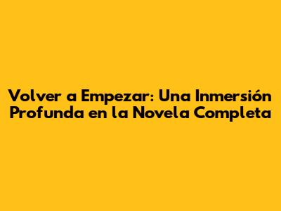En resumen, Volver a Empezar es una novela completa que ofrece una experiencia de lectura enriquecedora y emocionante. Con su trama cautivadora, personajes entrañables y temas universales, esta novela promete dejar una huella duradera en tu corazón. No esperes más y sumérgete en esta maravillosa historia. ¡Te aseguro que no te arrepentirás! La novela es una aventura literaria que te transportará a un mundo de emociones, intrigas y reflexiones. La novela es una experiencia que te cambiará para siempre y que te inspirará a vivir una vida más plena y auténtica. La novela es un tesoro literario que te acompañará para siempre.